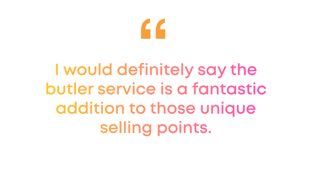 There’s a lot of different elements as well to this and I’ll probably jump the gun a little bit with any other questions that you ask, but yes, we talk about the butlers and how incredible they are and again it comes down to how that makes you feel on board. The butlers are there to help you whether it be unpacking, packing, or creating this incredible experience for those guests. But obviously this is all layered over on top of our all-inclusive program that gives the customers that sense of freedom and space is a big thing on board. But also the peace of mind that knowing that everything is taken care of.